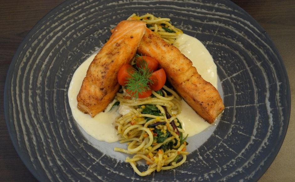 • Lachsfilets im Rapsöl „zart rosa“ braten.